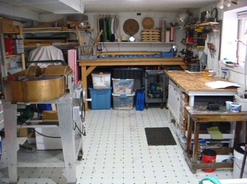 To begin, a quick overview of my own small basement paper studio, as clean as you will ever see it.