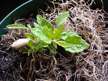 I sunk the pot into the garden over the winter, and in June 2011, I put it into the ground in a sunny spot in my small Chicago backyard, surrounded by a large, deep broken clay pot rim...