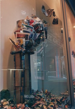 Detail: window of Illinois State Museum Chicago Gallery, the Thompson Center, during the exhibition Artists' Book Works: A Decade in Illinois.