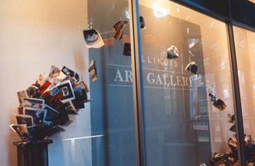 Detail: window of Illinois State Museum Chicago Gallery, the Thompson Center, during the exhibition Artists' Book Works: A Decade in Illinois.