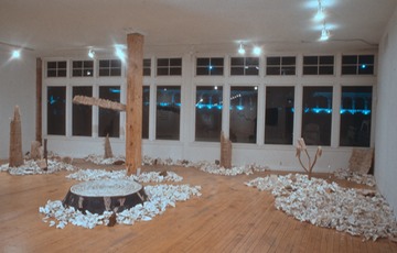 Speaking Volumes was created for an exhibition of installations titled Land Marks, at Spaces gallery in Cleveland, Ohio. It was a contemplative, fallow garden of early, empty kozo-fiber bookworks, mounds of shed book pages and rusted books; bits of found text and musical notations were strategically placed throughout. It was a bit of a risk because almost everything was below eye level, but I was pleased to see people sitting on the floor or the nearby bench to read, observe, or quietly absorb, as one might do in a real garden.
