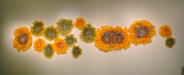 Reconfigurable installation of 15 pieces, abaca and luan, this view approx 10'H x 36'W x 3"D, 2009