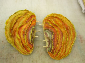 In the beautiful Blue Ridge mountains of North Carolina, I again based the color of the two remaining fungi from the Vermont / Haystack group on fungi that I had seen during my daily mountain walks. At the Penland School of Crafts, I chose two locations on campus: so much creative activity to listen to there!