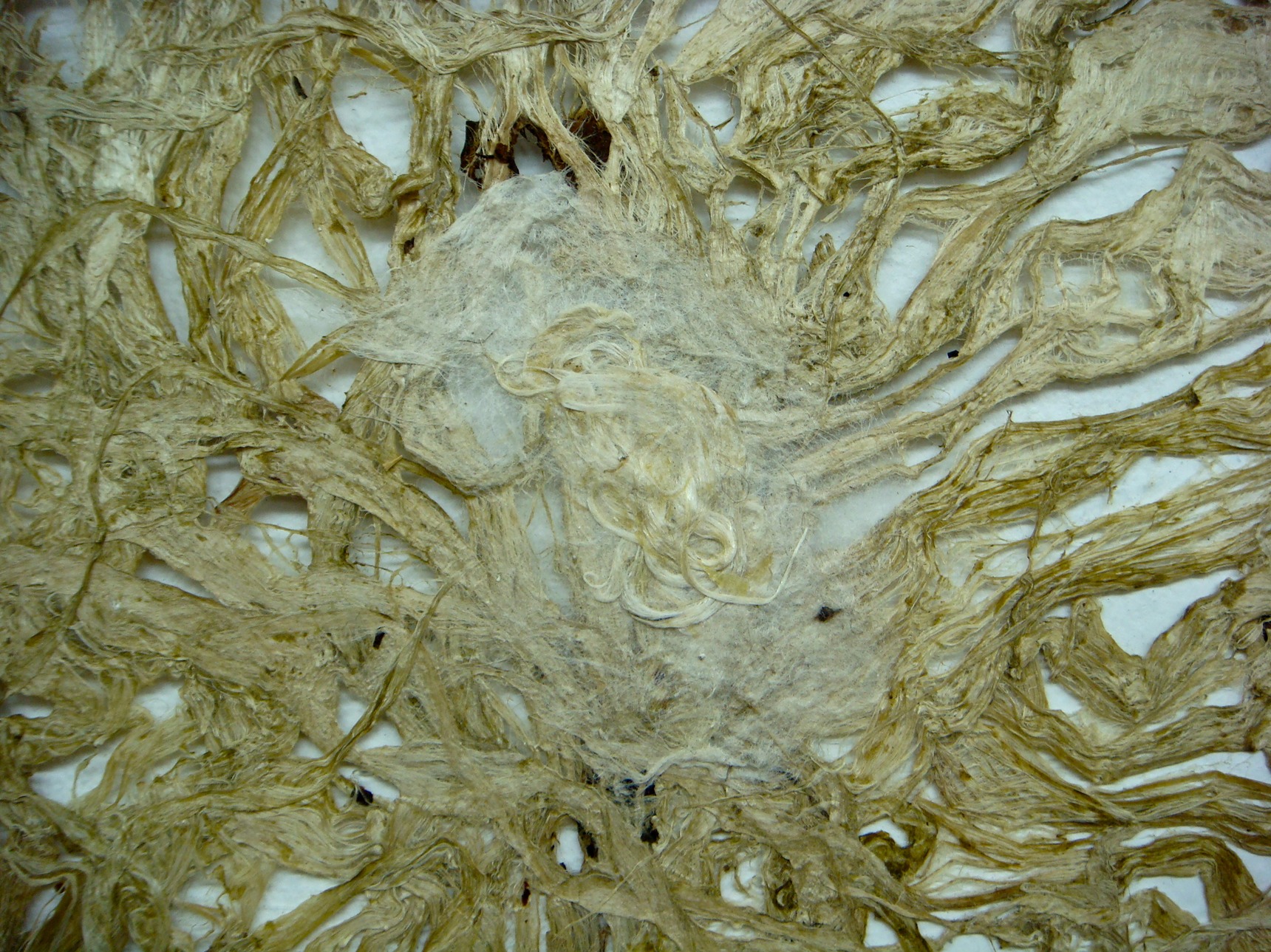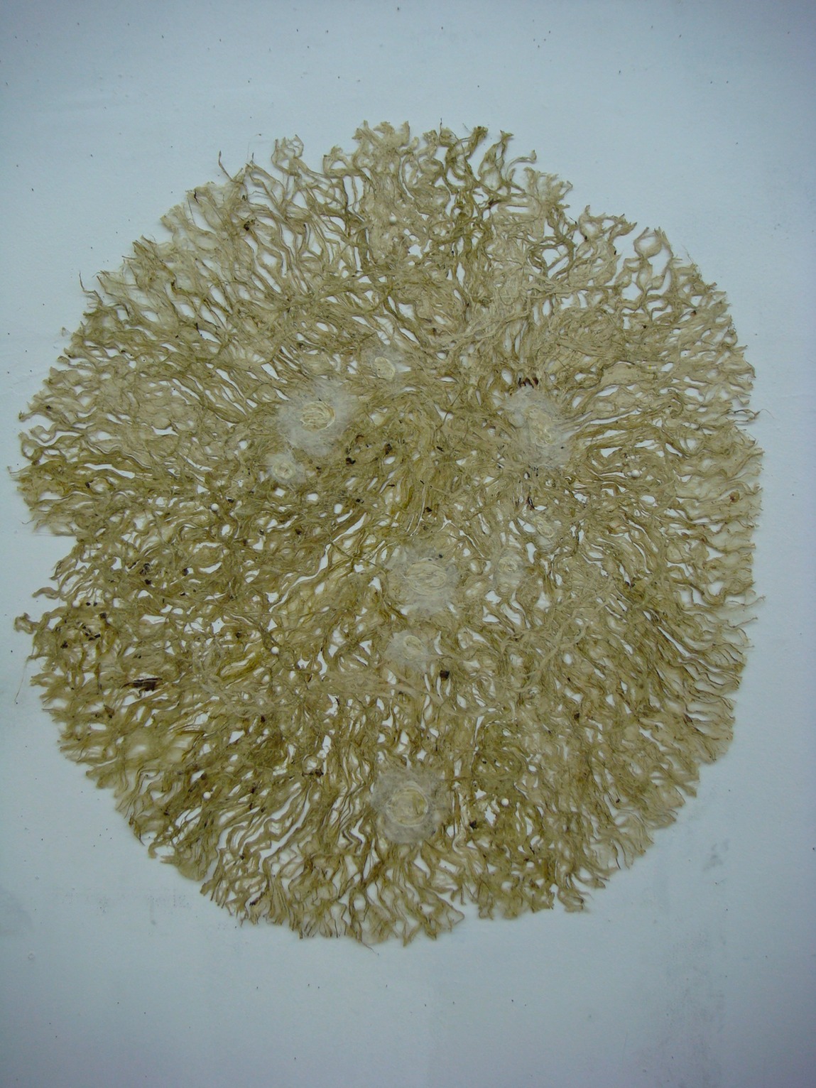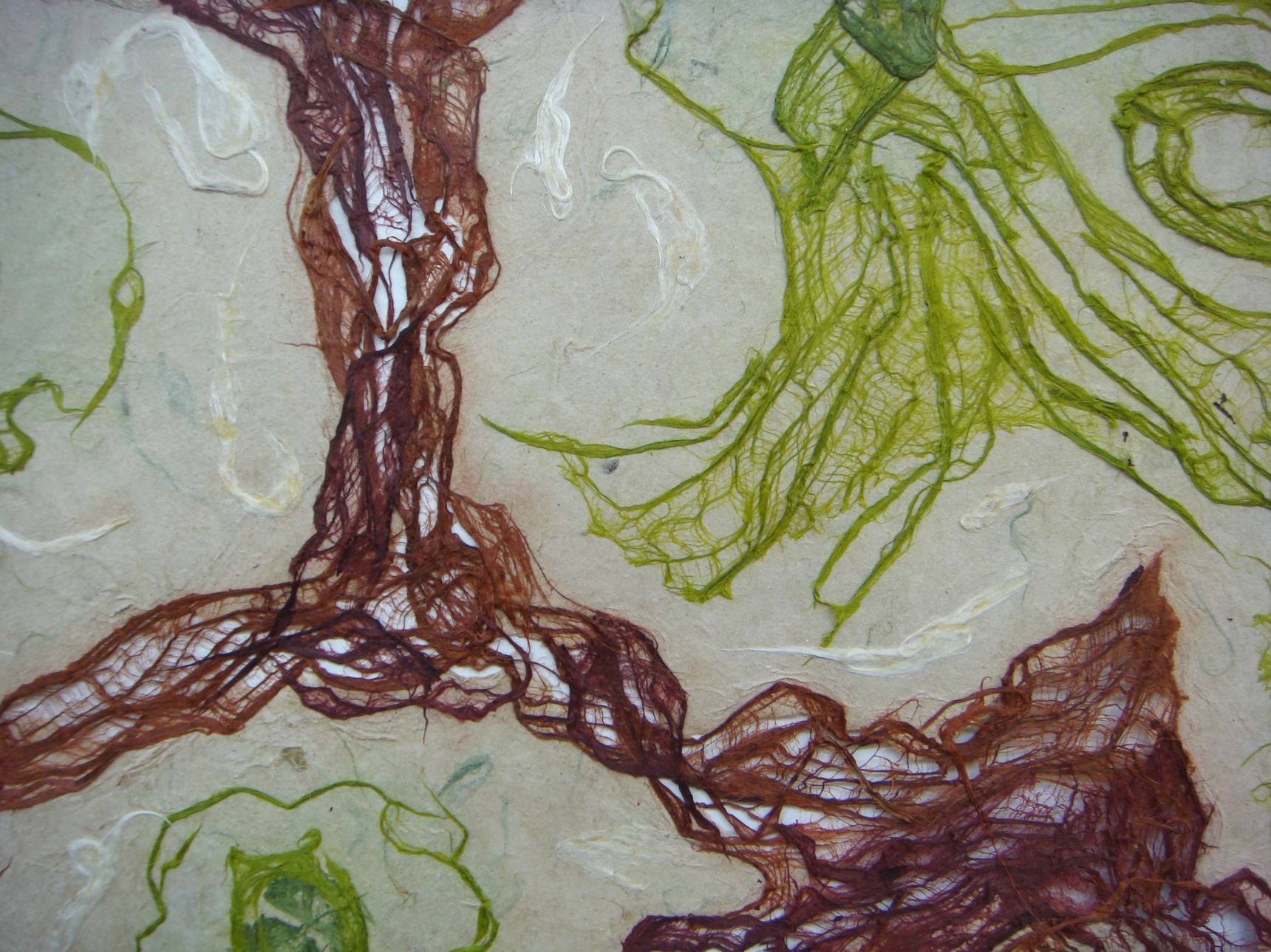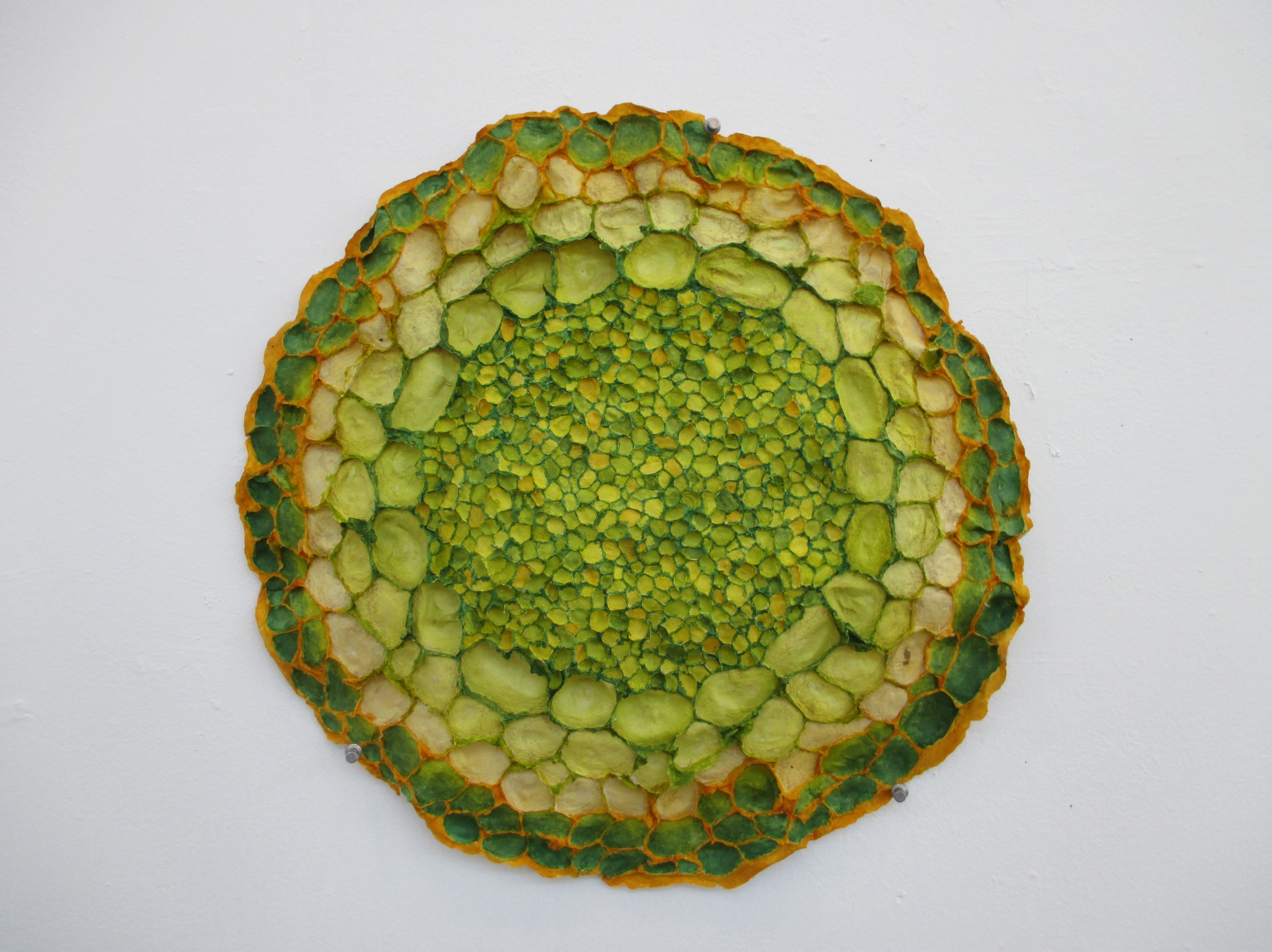 This 2D work isn’t, really. These are basically drawings made in any combination of bark and / or pulp and / or wet sheets. They are essentially heavy sheets of paper, textured, a low bas-relief. Root / Basis is the most textured, a cast piece of about 1” in depth.