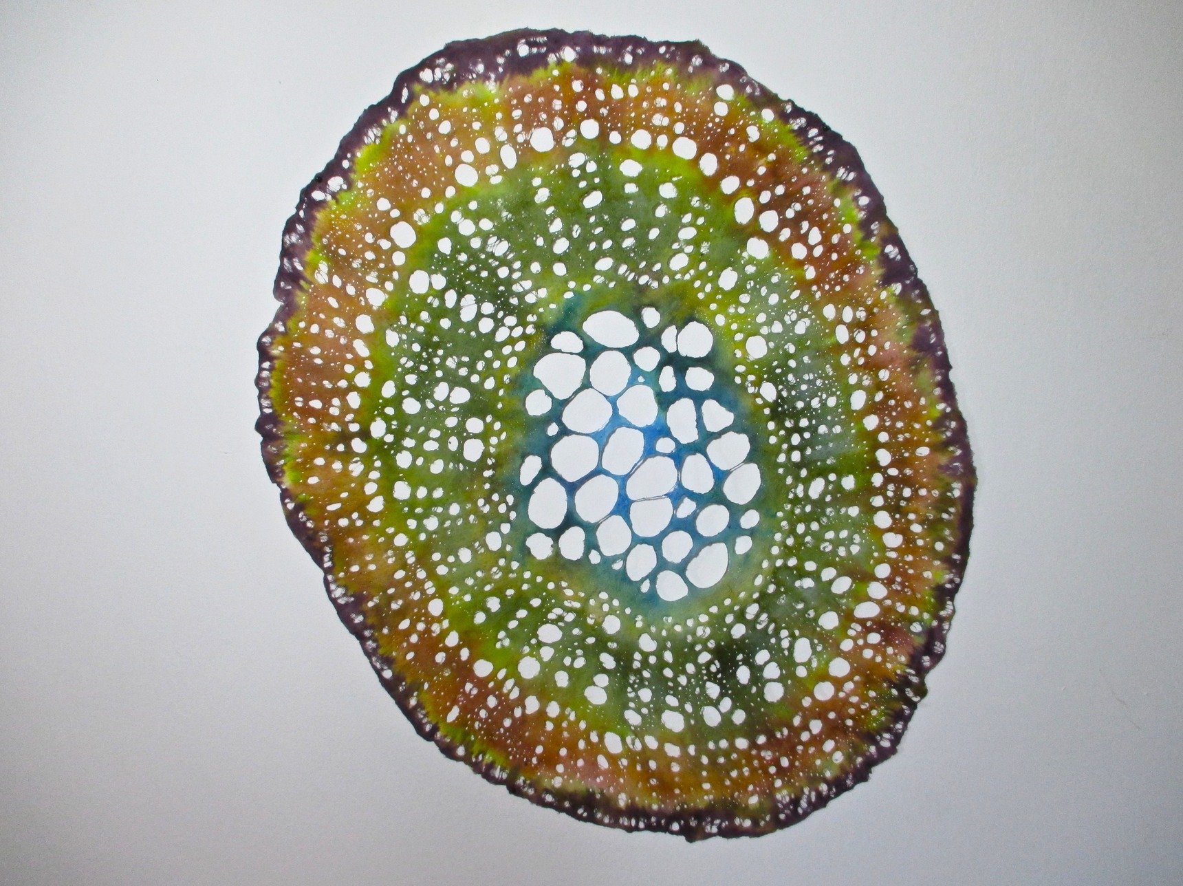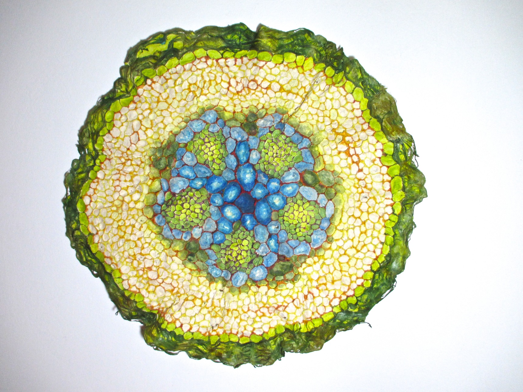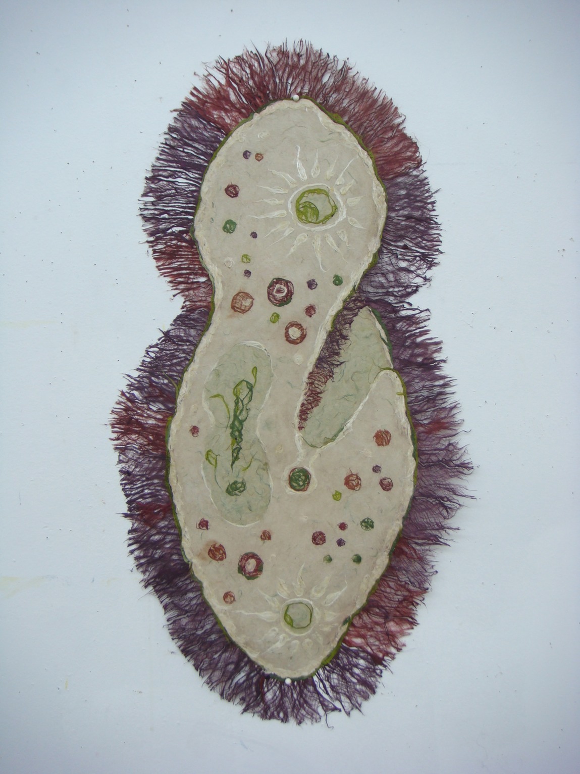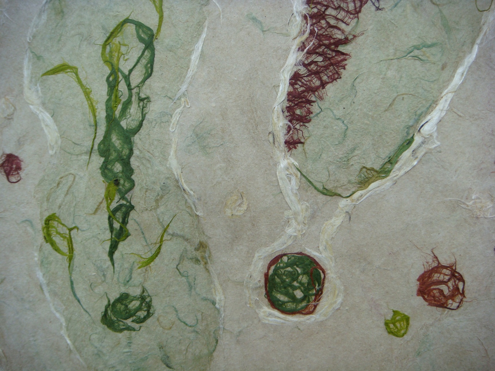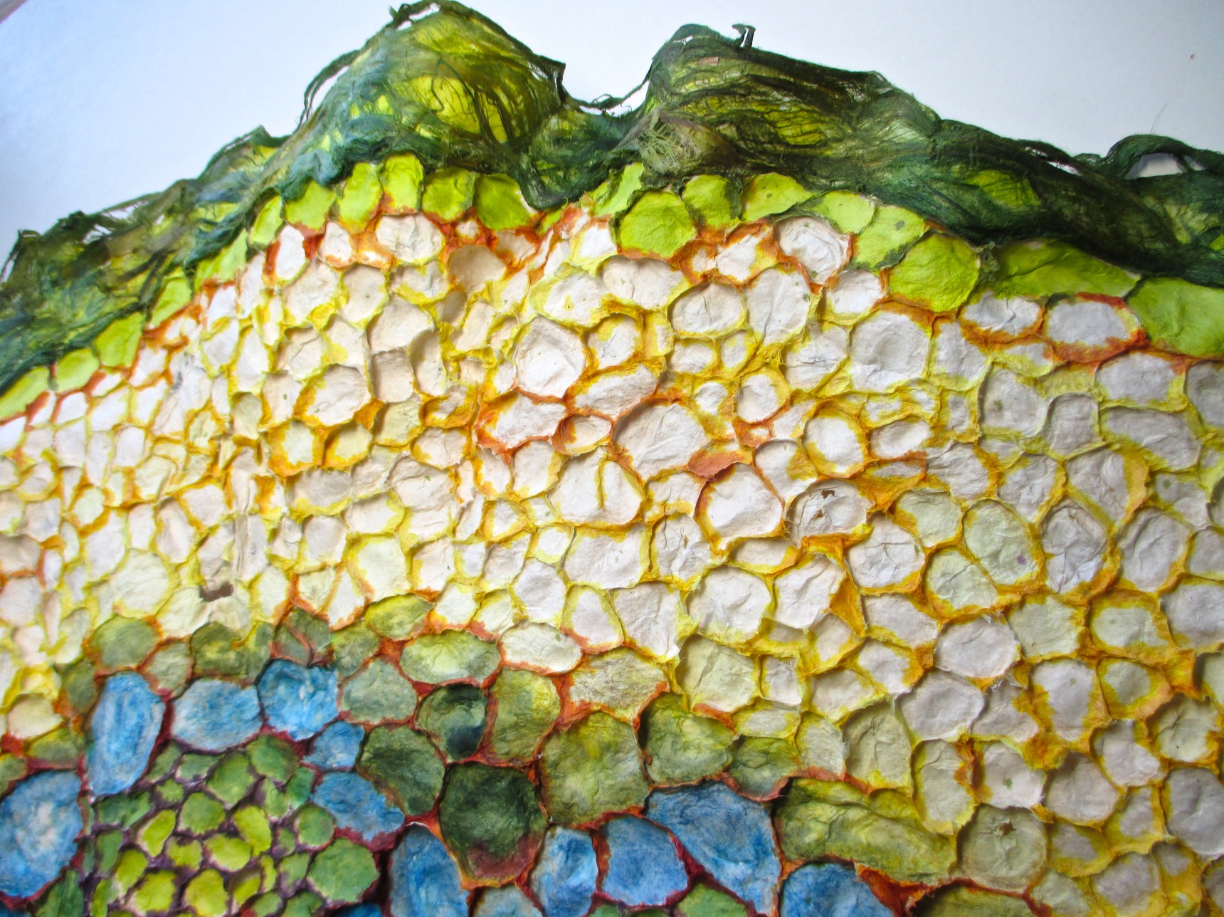 This 2D work isn’t, really. These are basically drawings made in any combination of bark and / or pulp and / or wet sheets. They are essentially heavy sheets of paper, textured, a low bas-relief. Root / Basis is the most textured, a cast piece of about 1” in depth.
